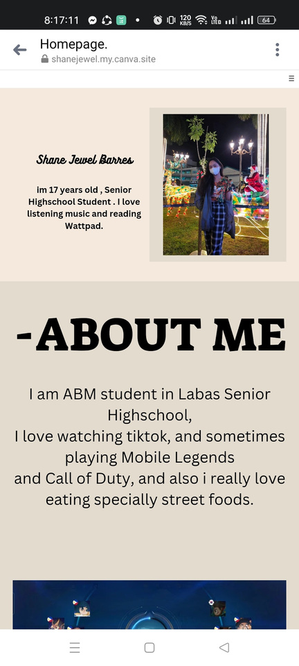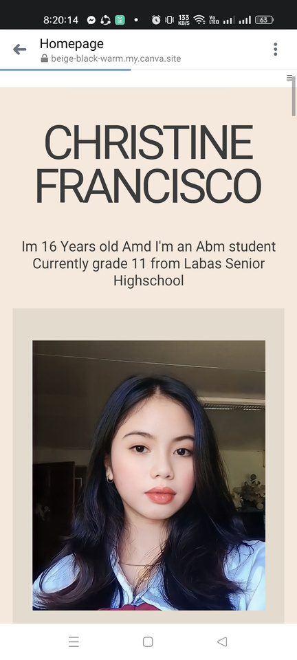 I am 17 years old, Iam currently studying in Labas Senior Highschool, Grade 11 and an ABM Student.